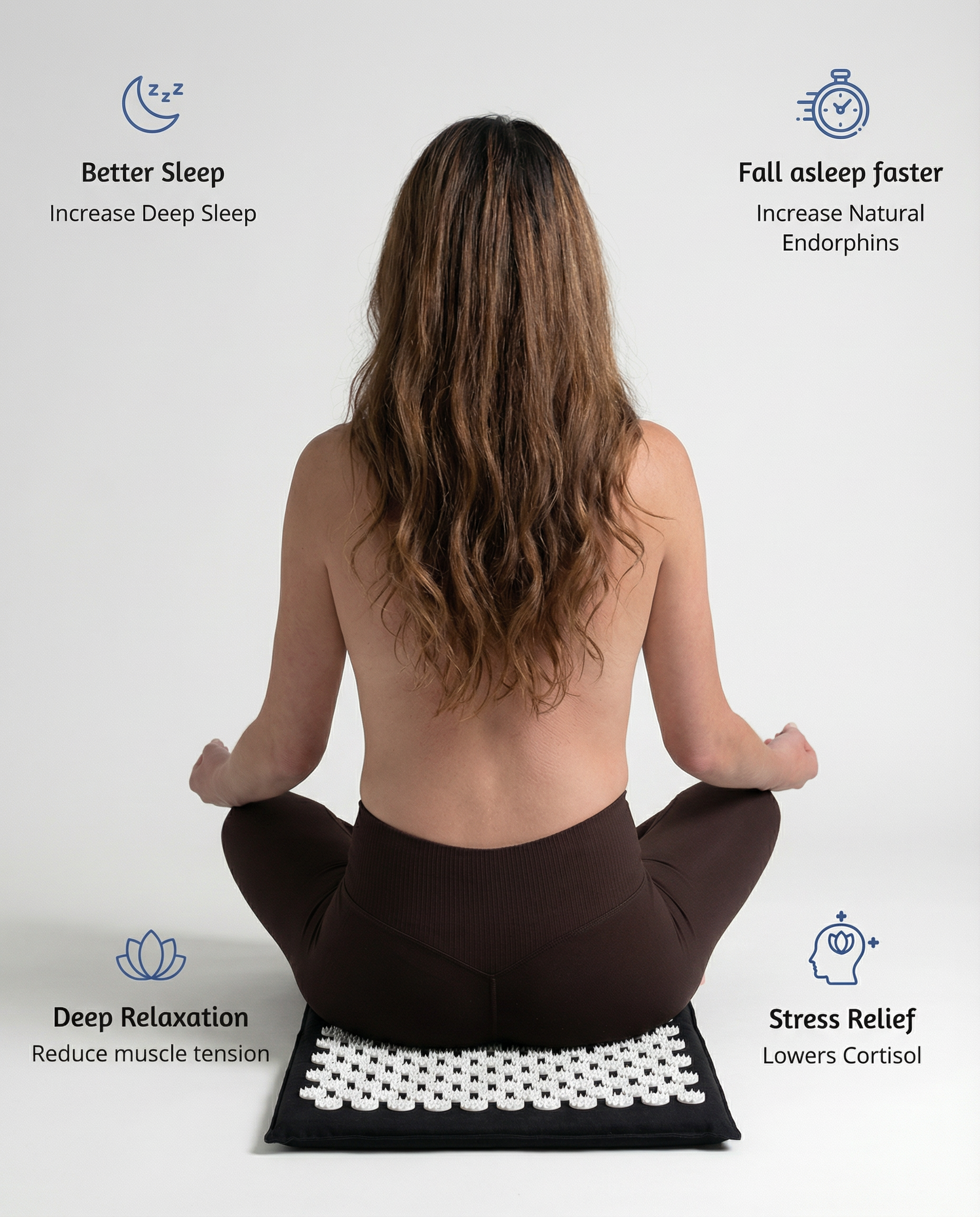 The mat's pressure points improve energy flow. This can reduce discomfort from muscle tension, headaches, and chronic pain.